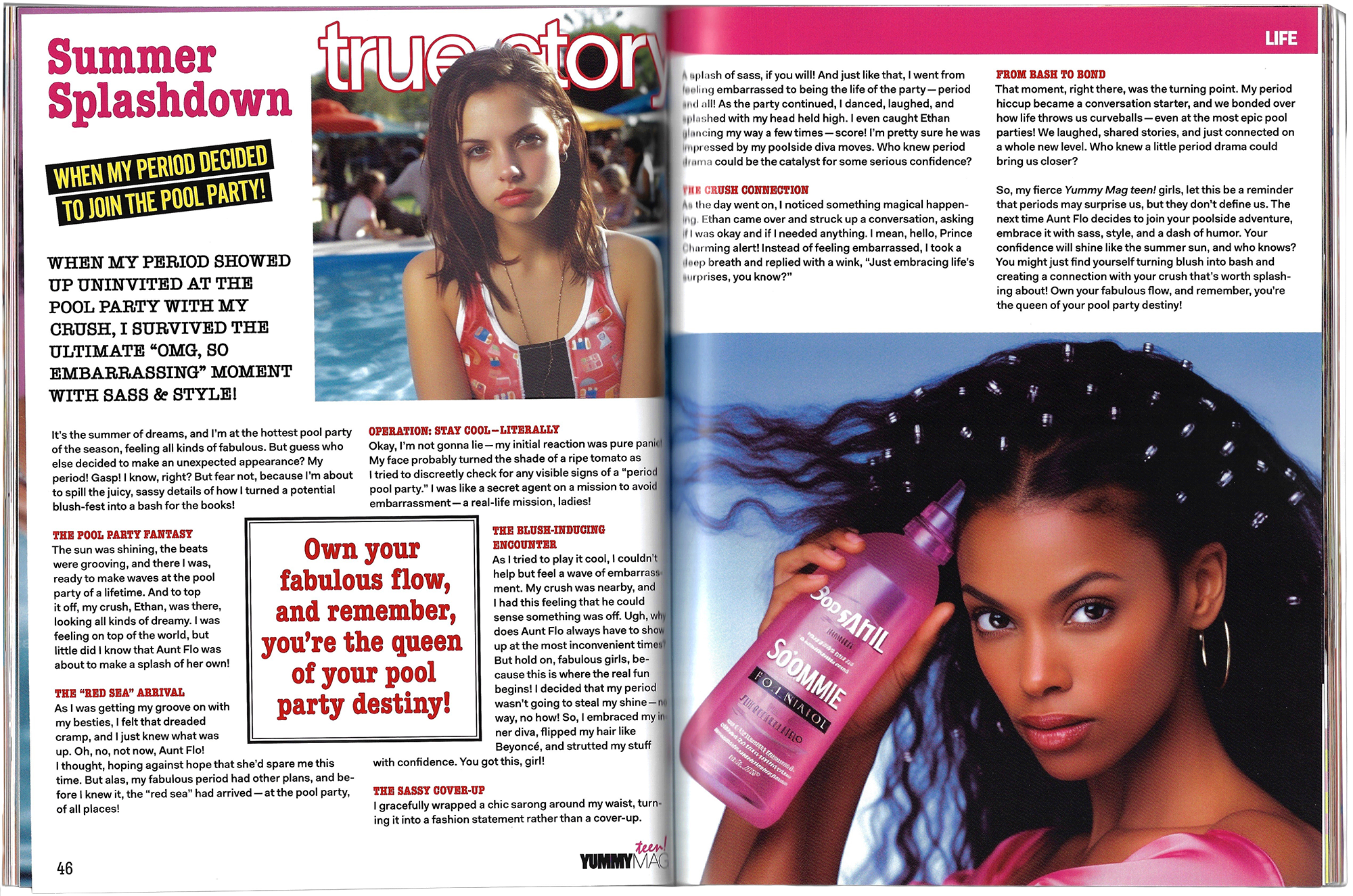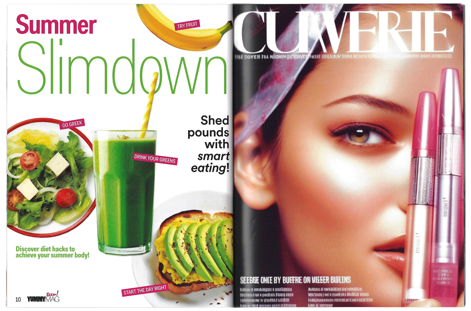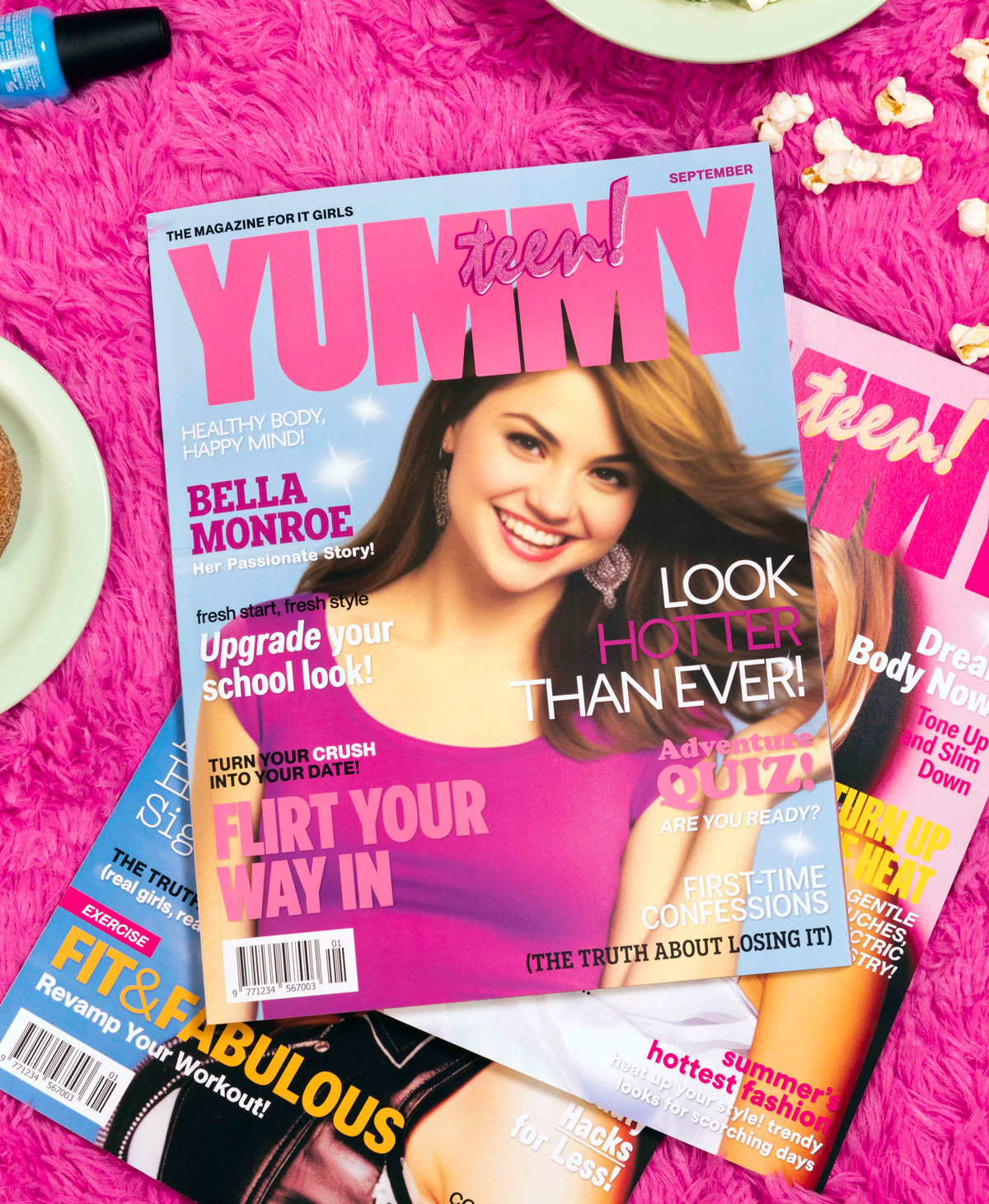 Yummy (Teen Edition!) is a fictional teen girl magazine created by artist Elizabeth Renstrom in collaboration with designer Elena Foraker and writer Coralie Kraft. Three issues were printed, collaged, and photographed in situ (teen girl bedroom) for Yummy, a solo exhibition of works by Elizabeth Renstrom as part of the Mid-Career Initiative at the Baxter St at the Camera Club of NY in 2023.
